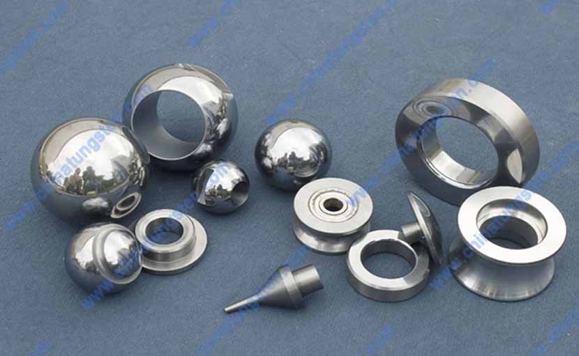 硬質合金耐磨零件主要強調耐磨、抗壓、高剛性、緻密和表面高光潔度。因此,應根據零件的具體要求,設計和選用低、中鈷和超細、細、中晶粒合金。高壓汽缸、精密紮輥、精密樣板、透鏡模、磨床管軸。傳動軸和長柱塞等耐磨零件,要求高剛性,高彈性模量,耐磨,高光潔度和耐疲勞,應設計和選用超細硬質合金。要求耐磨,高精度和高光潔度,其衝擊負荷極小,應設計和選用低鈷的超細或細晶粒合金。用於拉制鋼材和有色金屬絲、條、管、型材的拉伸模,則根據絲、管、條、型材的截面大小採用不同含鈷量的合金。直徑越大拉制應力越大,要求合金有好的使用強 度和衝擊韌性。同樣的直徑,管材比絲、條材要求更大的使用強度和衝擊韌性,因此,拉伸模牌號的鈷含量隨拉伸材直徑增大而增大。為了保證拉伸材的品質和提高拉伸模的壽命,在保證使用強度的前提下,盡可能提高硬質合金的耐磨性、抗壓強度和表面光潔度。設計和選 用超細、細或中晶粒WC-Co合金。詳情,請訪問:硬質合金耐磨零件。